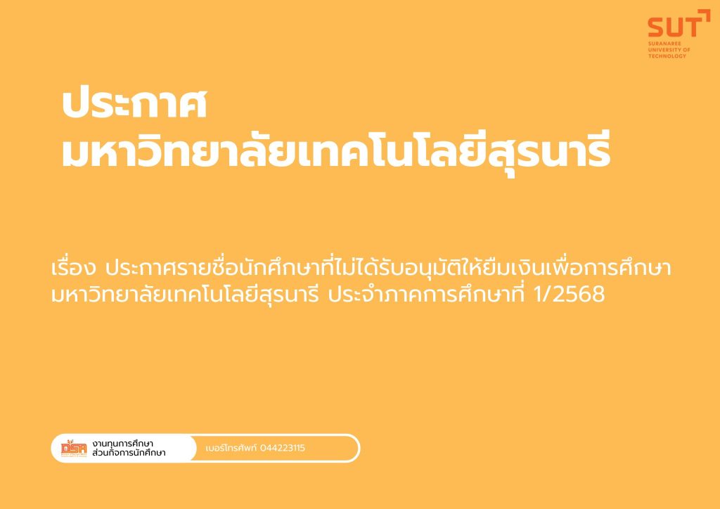 ประกาศรายชื่อที่ไม่ได้รับอนุมัติให้ยืมเงินเพื่อการศึกษา ภาค 1/2568