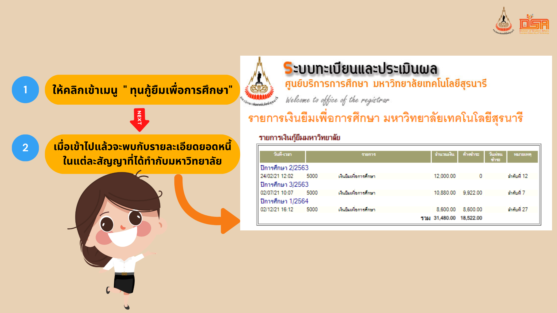 ขอบคุณเงินก้อนแรกที่ทำให้เรามีวันนี้ ถึงเวลาส่งต่ออนาคตดีๆ แบบนี้ให้รุ่นน้องแล้ว...เริ่มต้นง่ายๆ แค่เข้าไปเช็กยอดและชำระคืน ตามขั้นตอนนี้: https://shorturl.at/gnZEj 💰🎓 การชำระคืนเงินยืมมหาวิทยาลัย คือ ส่วนหนึ่งของการวางแผนการเงินในอนาคต เริ่มเร็ว...ก็หมดเร็ว! 🥰 มาวางแผนการเงินให้ชีวิตปังๆ กัน! ✨ คืนเงินยืมมหาวิทยาลัย SUT มทส