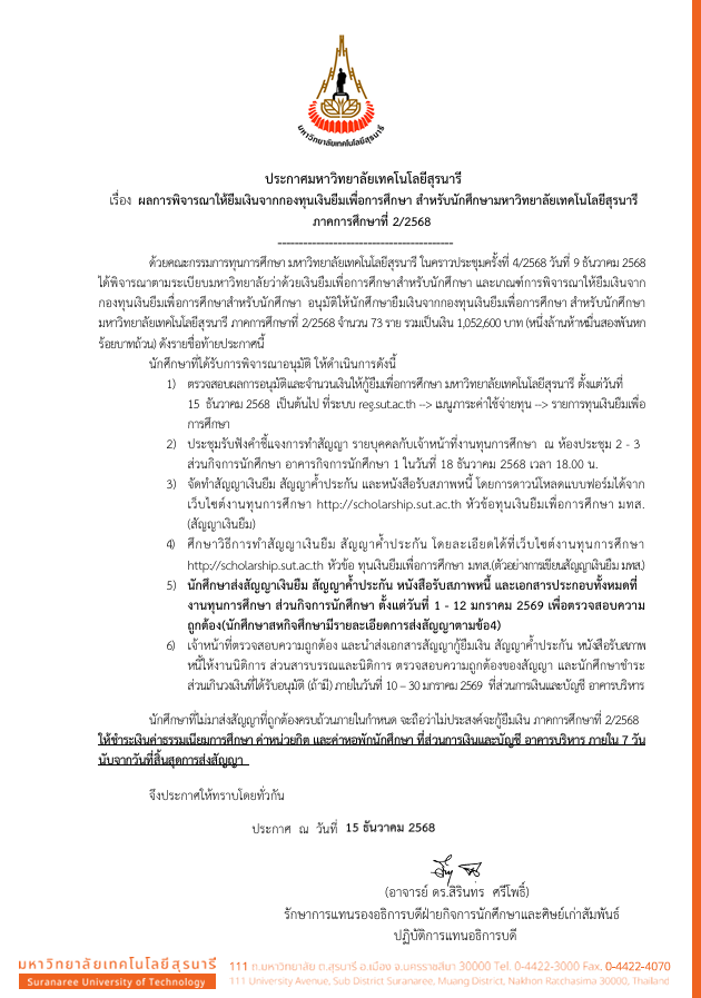 ขอบคุณเงินก้อนแรกที่ทำให้เรามีวันนี้ ถึงเวลาส่งต่ออนาคตดีๆ แบบนี้ให้รุ่นน้องแล้ว...เริ่มต้นง่ายๆ แค่เข้าไปเช็กยอดและชำระคืน ตามขั้นตอนนี้: https://shorturl.at/gnZEj 💰🎓 การชำระคืนเงินยืมมหาวิทยาลัย คือ ส่วนหนึ่งของการวางแผนการเงินในอนาคต เริ่มเร็ว...ก็หมดเร็ว! 🥰 มาวางแผนการเงินให้ชีวิตปังๆ กัน! ✨ คืนเงินยืมมหาวิทยาลัย SUT มทส